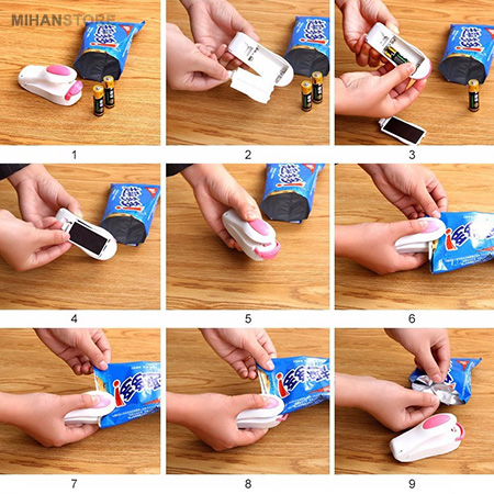 توسط دستگاه پلمپ حرارتی کیسه به راحتی کیسه های فریزر و پلاستیکی را پلمپ کنید البته باید کیسه های شما از نوع ضخیم باشد و این محصول عملا برای کیسه های نازک کاربردی نخواهد داشت. این محصول برای نگه داری مواد غذایی داخل یخچال و یا فریزر بسیار مناسب است زیرا درب کیسه های حاوی مواد غذایی را به خوبی می بندد و اجازه ورود هوا را به داخل بسته نمی دهد. شما می توانید از طریق دو عدد باتری قلمی این دستگاه را به کار بیندازید و از آن استفاده کنید. پلمپ کننده را روی انتهای کیسه های پلاستیکی خود بکشید تا بسته شود و دیگر هیچ چیز از آن بیرون نریزد.