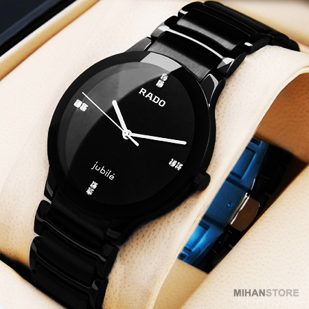 ساعت مچی Rado طرح DarkClassy دارای قاب و بند استیل با پوششی از استیل مشکی رنگ است که سرامیکهای مشکی درون بند آن قرار داده شده است. صفحه نمایش این ساعت به رنگ مشکی ساده ، نمایش آنالوگ، عقربه های نقره ای بوده و مارکرهای الماس به جای شماره های 3،6،9 و 12 جایگذاری شده است. قاب پشتی آن از جنس استیل و بسیار مستحکم است. همچنین قطر صفحه نمایش 3.8 سانتی متر می باشد. این ساعت با طراحی زیبا و شیک خود توانسته نظر مردم جهان را به خود جلب کند. ساعت Rado بسیار خوش ساخت و با کیفیت تولید شده است، کیفیتی که با بستن ساعت روی دستتان متوجه آن خواهید شد.