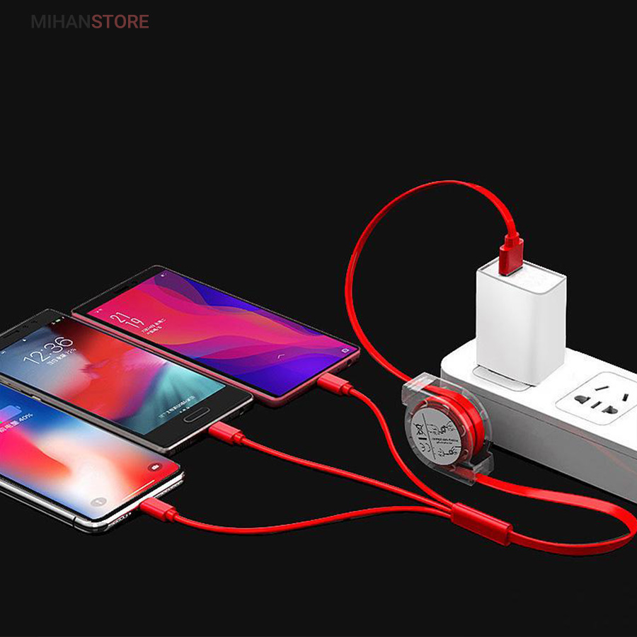 کابل فست شارژ USB جمع شو سه سر