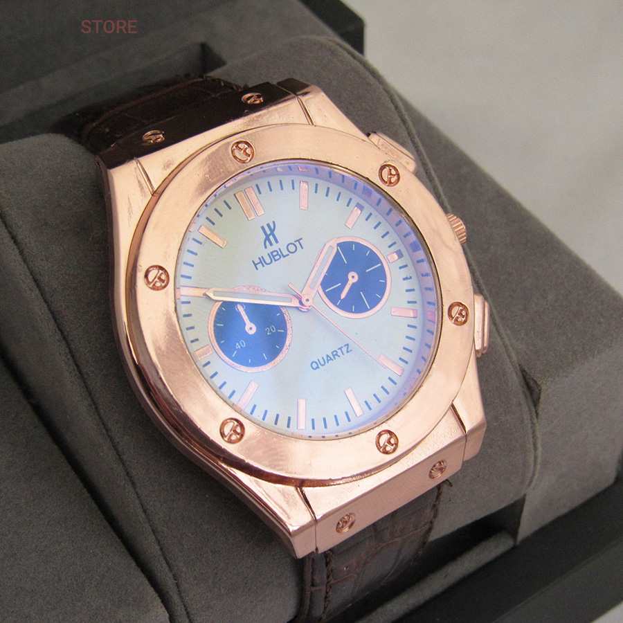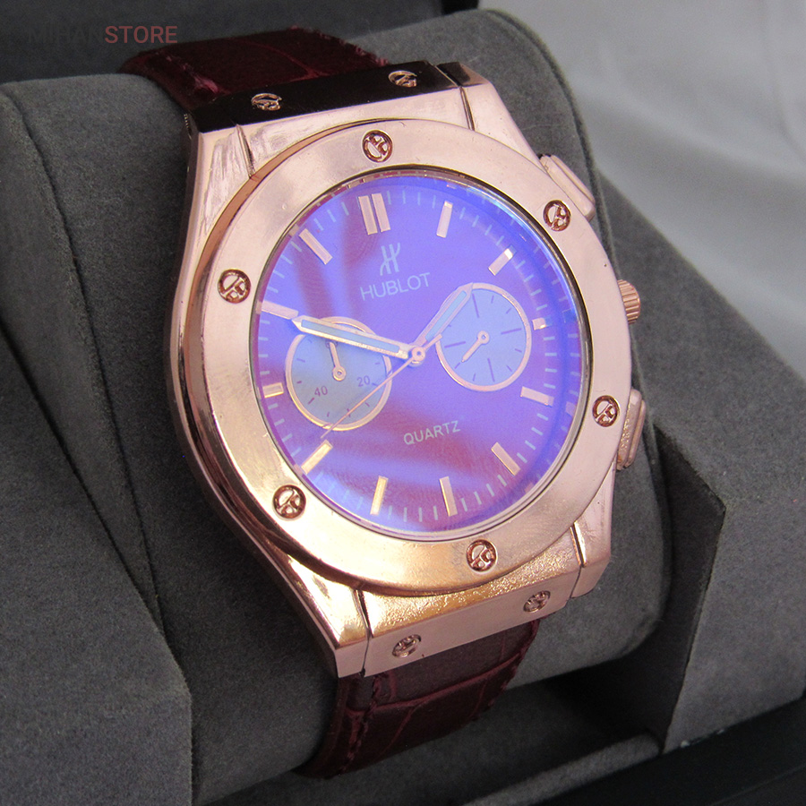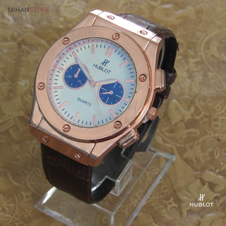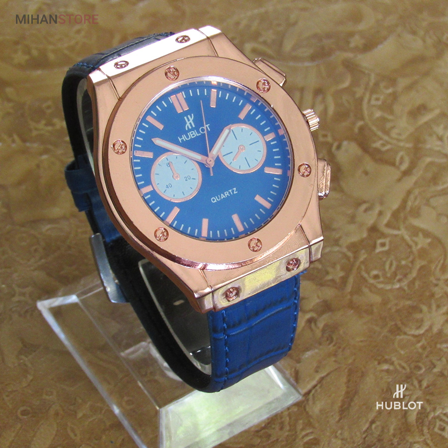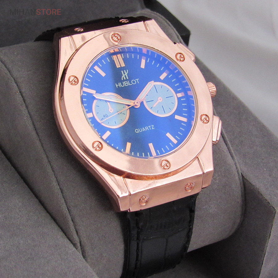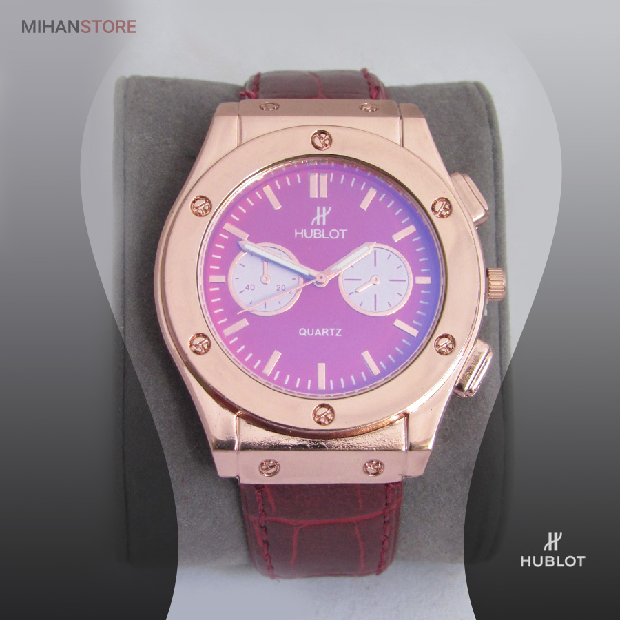 Hublot می باشد. این ساعت دارای بند طرح چرم بسیار با کیفیت و صفحه شیشه ای می باشد که در رنگ بندی متنوع عرضه شده است که هنگام تکمیل سفارش در سبد خرید رنگبندی آن قابل انتخاب است. ساعتی که پیش روی شماست طراحی شده از روی این مدل