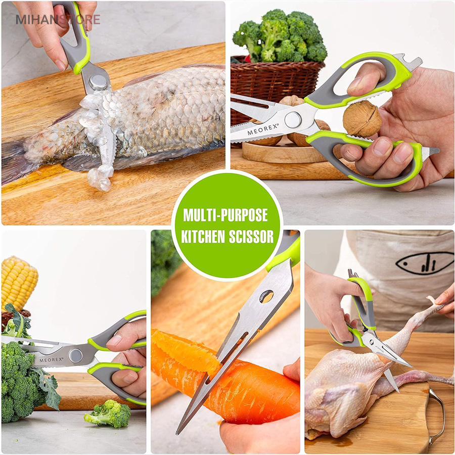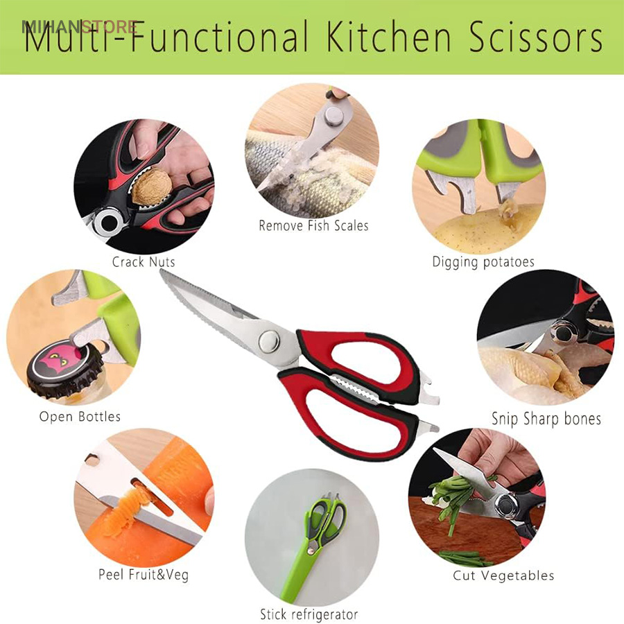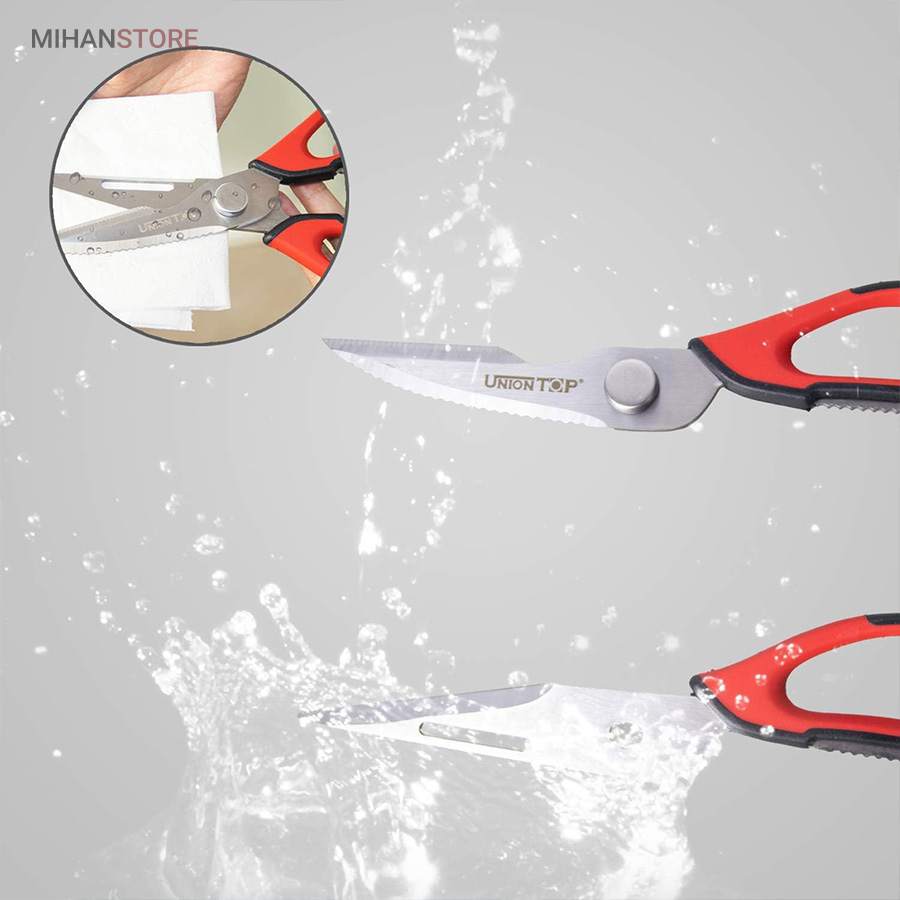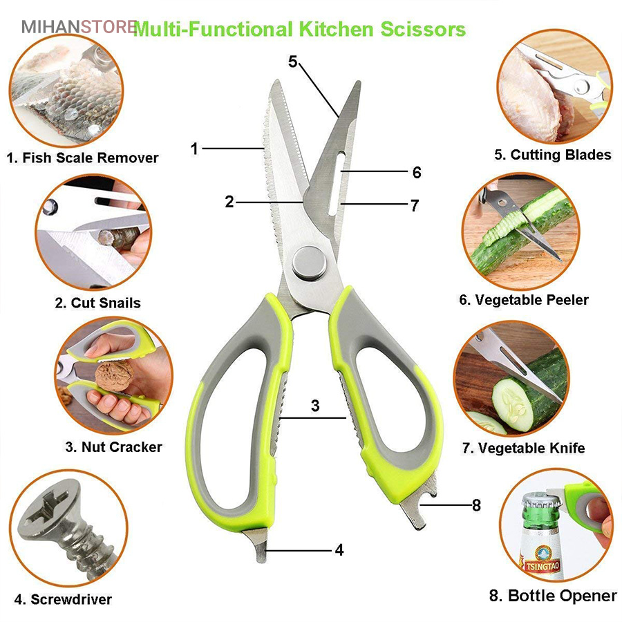 هم قیچی، هم بازکن، هم کابل کش و هم چاقو! این قیچی جادویی 8 کاره باورنکردنی در هر زمینه ای مفید خواهد بود. محصولی کاملاً جدید که باید در کار آشپزخانه خود داشته باشید و کار شما را آسان‌تر می‌کند و نمی‌توانید نزدیک آن باشید. در آشپزخانه می توانیم هنگام سرو مرغ، سبزیجات را خرد کنیم یا به راحتی استخوان ها را برش دهیم. می توانید از آن به عنوان کرکر فندقی یا گردو استفاده کنید. به راحتی می توانید درب بطری های خود را باز کنید. به طور خلاصه، به لطف قیچی جادویی 8 کاره، کاری که در زندگی روزمره انجام می دهید اکنون کاربردی تر شده است. قابل شستشو در ماشین ظرفشویی می باشد.
