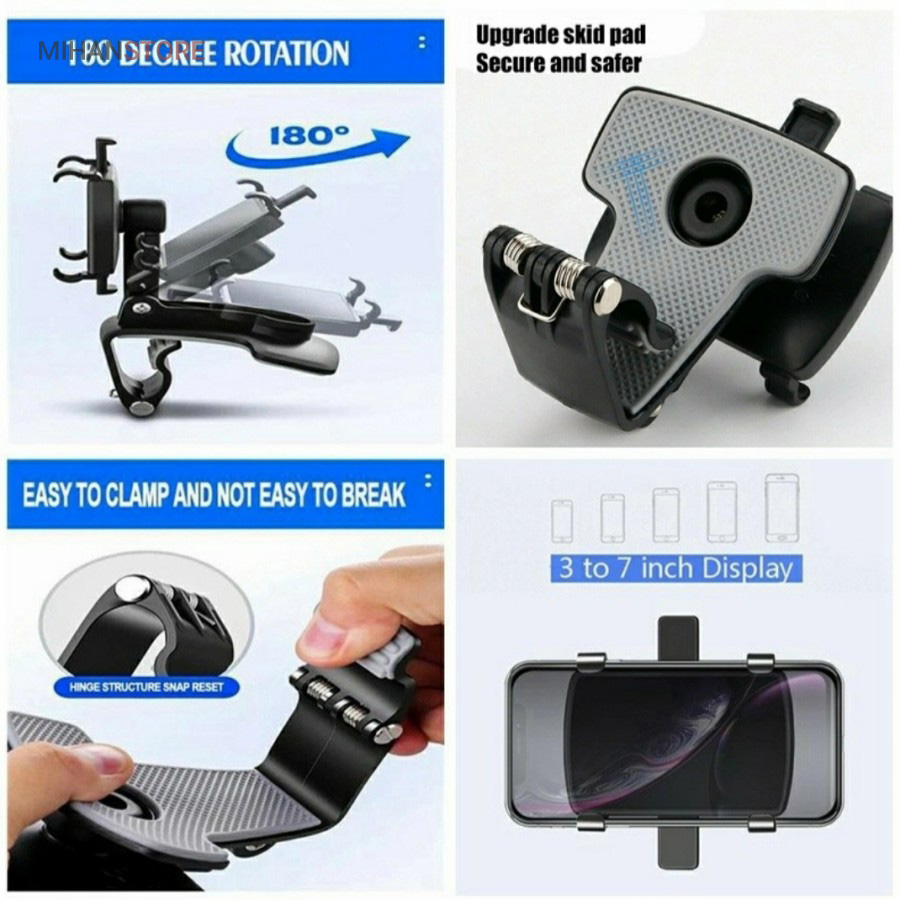 هولدر موبایل با قابلیت چرخش 360 درجه ای مخصوص ماشین بسیار شیک و کاربردی جهت نصب چند منظوره گیره مستحکم و بدون اسیب جهت نصب موبایل جنس محصول: محصولی با کیفیت بالا ساخته شده توسط پلاستیک ABS مقاوم میباشد طراحی مناسب و اصولی: پد سیلیکونی ضخیم زیر گیره ها و اسفنج های نگهدارنده برای محافظت کردن از تلفن همراه شما ساخته شده است. جهت نصب: هولدر نگهدارنده موبایل گیره ای روی داشبورد 360 درجه را میتوانید هرجایی نصب کنید مثل:  روی اینه وسط – روی داشبورد – میز کار و یا افتابگیر ماشین این هولدر به دلیل نداشتن چسب و یا اتصال دهنده های پمپی به راحتی و به تعداد دفعات نامحدود قابلیت تغییر مکان نصب را دارد قابلیت منحصر بفرد: هولدر از گیره های قدرتمندی ساخته شده پس نگران افتادن یا اسیب دیدن موبایل خود نباشید [استفاده آسان] برای نصب روی داشبورد، آینه عقب و آفتابگیر ماشین شما عالی است. دهانه نگهدارنده موبایل این هولدر، نگهداری مطمئن از موبایل شما در حین رانندگی های درون شهری و بیرون شهری که نگرانی افتادن موبایل را بطور کل از بین میبرد و علاوه بر این با طراحی عالی و داشتن پد و محافظ از اسیب زدن رساندن به سطح بدنه موبایل را ندارد. توانایی چرخش 360 درجه: می توانید تلفن خود را به صورت عمودی یا افقی قرار دهید، با هر زاویه ای که برای استفاده از نقشه های GPS راحت تر است طراحی عملکرد یک دست به شما امکان می دهد هنگام رانندگی دست خود را آزاد کنید.