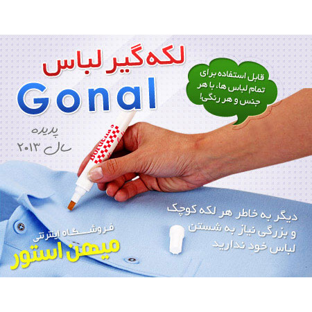 قلم لکه گیر لباس Gonal محصول جدیدی می باشد که با عرضه خود توانست یک دگرگونی در صنعت پوشاک دنیا ایجاد کند. این قلم قادر هست لکه هایی را که بر روی لباس شما قرار دارد به راحتی و در عرض چند ثانیه پاکسازی کند و لباس شما را مانند روز اولش کند! با استفاده از این قلم دیگر برای هر لکه کوچک و بزرگی نیاز به شستن لباس خود ندارید و در عرض چند ثانیه می توانید آنها را محو کنید! از دیگر ویژگی های این محصول می توان به کارایی آن با تمام لباس ها با هر جنس و رنگی اشاره کرد.