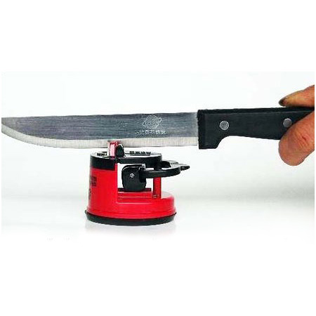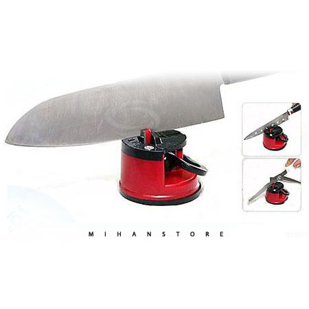 ابتدا بایستی جسم مورد نظر راکاملا پاک نموده وکف چاقو تیز کن را روی شیشه و یا هر سطح صافی قرارداده و گیره آن را به پایین بکشید تا محکم به کف سطح بچسبد. چاقو را در داخل تیغه قرارداده و سپس آن را فقط در یک جهت به طرف خود بکشید واز کشیدن چاقو به طرف جلو خوداری کنید. پس از چها بار تکرار چاقو کاملا تیز میشود.
